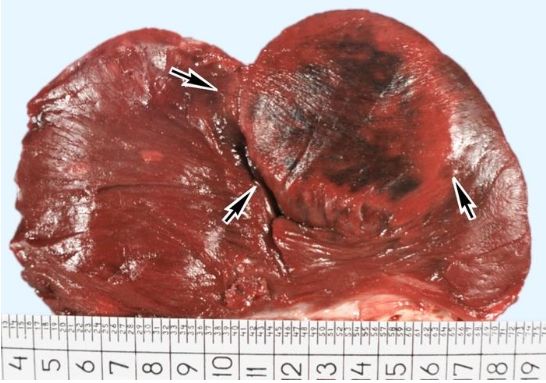 - Sa ugat at arterial thrombosis. Ang ga deposito ng mga dumi mula sa mga daluyan ng dugo ay bubuo ng thrombi at magsasanhi sa pagkamatay ng daluyan na maaaring humantong sa pagkamatay ng grupo ng mga selula mula sa isang organismo. Kapag natanggal ang thrombus at masasama sa daloy ng dugo, maaaring mangyari ang pagbara ng daluyan ng dugo sa puso, ang cardiac arrest, kung saan sa 70% ng mga kaso ay sinusundan ng pagkamatay ng pasyente.